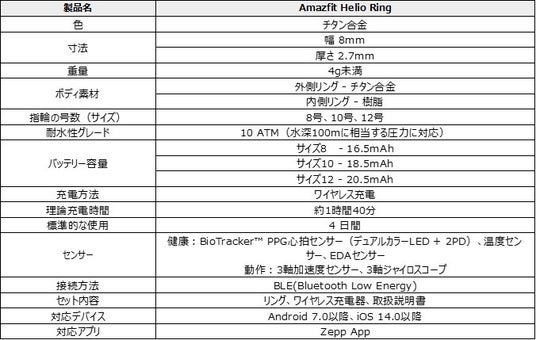 ・製品名: Amazfit Helio Ring (日本語読み:アマズフィット ヘリオ リング)