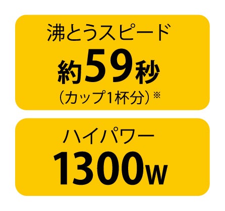 ※水温・室温23度。定格消費電力にて、カップ1杯分約140mLにおいて通電自動オフするまでの沸とう時間(自社測定法)。