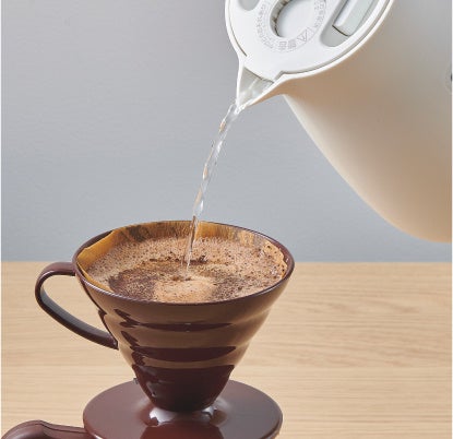 その他、狙った場所にきれいに注げて、お湯の飛び散りを抑える「ドリップロジック構造」や、一目で水量の確認ができる「水量窓」など、細かい箇所にもこだわった機能がつまっており、初めて電気ケトルをご購入される方に、ぜひ選んでいただきたい製品です。