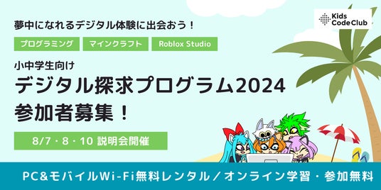 一般社団法人Kids Code Club(キッズコードクラブ 所在地:福岡県福岡市 代表:石川麻衣子)は、経済的な事情を抱える全国の小中学生向けに、PC・Wi-Fiの貸与とオンラインでのプログラミング学習支援を無償で行う「デジタル探求プログラム2024」の募集を開始しました。