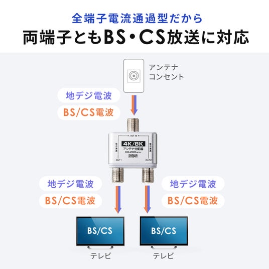 アンテナ分配器 4K対応 8K対応 BS/CS/地デジ/CATV対応 2分配