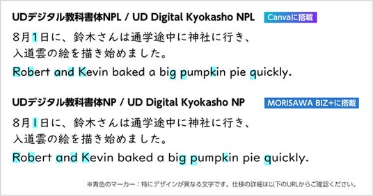 ■MORISAWA BIZ+で提供しているUDデジタル教科書体との違い