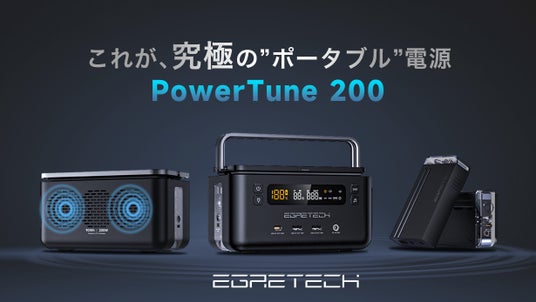 エスエス電子株式会社(本社:埼玉県川越市、代表:菅原信勝)は、アメリカやヨーロッパで人気のポータブル電源メーカー「EGRETECH」の新製品として、手のひらサイズの着脱式ポータブル電源×スピーカー「PowerTune 200」を応援購入サービスサイト「Makuake」にて先行販売を開始します。