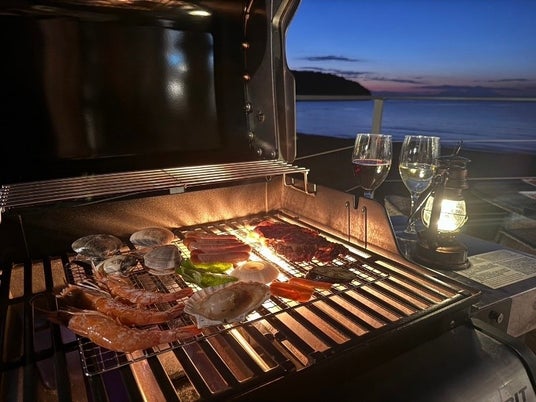 備え付けBBQキットで地元の新鮮食材を楽しむ