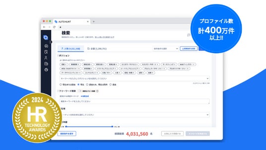 『AUTOHUNT』は、Web上の分散した人材・企業情報を統合し、AIを活用して優秀な人材を横断的に検索できるプラットフォーム。400万人以上のプロファイルと500万社以上の企業情報を包含し、潜在的な人材も含めた幅広い候補者へのアプローチが可能。採用MA/CRM機能やChatGPTを活用した自動化により、採用関連業務を約60%削減。企業の効率的な人材獲得と労働市場の活性化に寄与する優れたサービスであると高く評価されました。