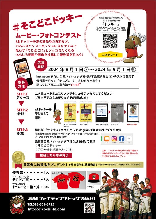 今回のこのコラボレーションにより、ファンの皆様はスマートフォンを通じて「ドッキー」があたかも現実世界に存在するような体験が可能となります。試合の応援時、日常や夏の旅先でのひと時など、様々な時間・場所で、可愛く、愛くるしい「ドッキー」を撮影した動画・写真をSNSに投稿し、コンテストに参加することができます。