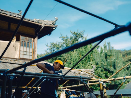 このようなポジティブな循環を生めるよう、「しまなみ映画祭 2024」ではきっかけづくりとして、会場では竹害対策の一環で竹藪から竹を切り出し、それを建材としてテントに採用します。地元の材木店が産業廃棄物として処理する廃材を引き取り、それも会場の建材に使用する予定です。