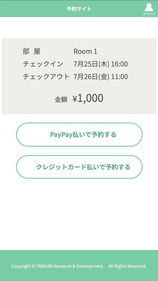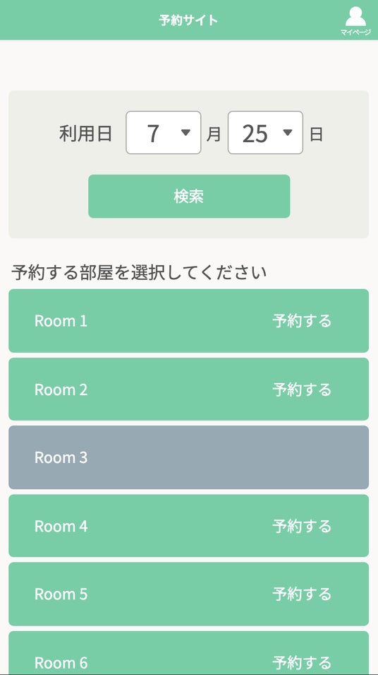 事前登録を行い、希望する宿泊日時をタップするだけで予約が完了します。