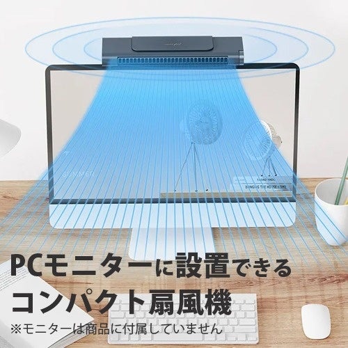 MoniFan-G(モニファン ジー)は、デスクトップ PCやノートPCなどの、モニター上に設置ができる便利な冷却ファンです。