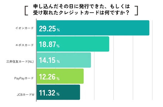 - 即日で発行または受け取りができたカードとして最も多く挙げられたのは「イオンカード」。