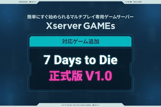 エックスサーバー株式会社(所在地:大阪市北区、代表取締役:小林 尚希)は、2024年7月26日、サーバーの知識不要で簡単にマルチプレイが始められるマルチプレイ専用ゲームサーバー『Xserver GAMEs』において、対応ゲームに「7 Days to Die 正式版 V1.0」を追加しました。