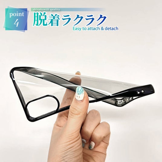 内側に小さな凹凸があるので端末に張りつかずにじみを防止できます