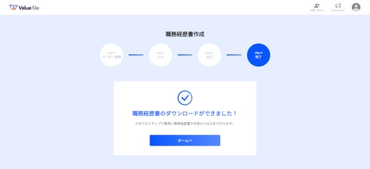 4月中旬より試験的に運用を開始した、レジュメマネジメントツール「Value file」が登録者100名を突破し、β版をリリースしました。試験運用を経てAIドラフト作成機能の正式リリースのほか、Googleシングルサインオンの追加、使い方チュートリアルの実装、アウトプットのデザイン変更等、より使いやすい仕様に進化しました。今後も継続的なアップデートを実施し、ユーザーがより簡単かつ効果的に職務経歴書を作成・管理できるようサポートします。