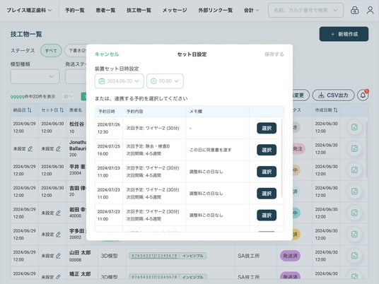 「b-align」には予約管理機能も搭載されており、各技工物のセット日を当該患者の予約日に容易に紐付けることができるため、納品漏れや発注不備などのミスを極力減らすことにつながります。