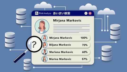 「RiskAnalyze」のあいまい検索機能は、外国人の名前照会において重要な役割を果たします。この機能により、金融機関や規制対象事業者は反社チェックやAML/CFT対策において、誤記や多様な名前表記にも対応し、正確なリスク評価とコンプライアンスを実現します。