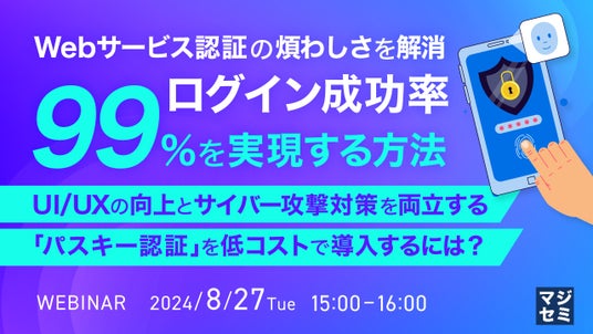 マジセミ株式会社は「Webサービス認証の煩わしさを解消、ログイン成功率99%を実現する方法」というテーマのウェビナーを開催します。