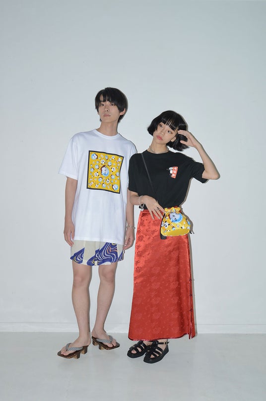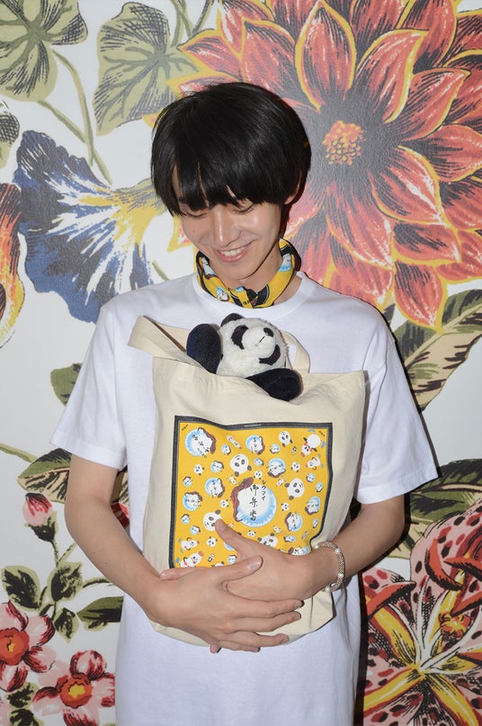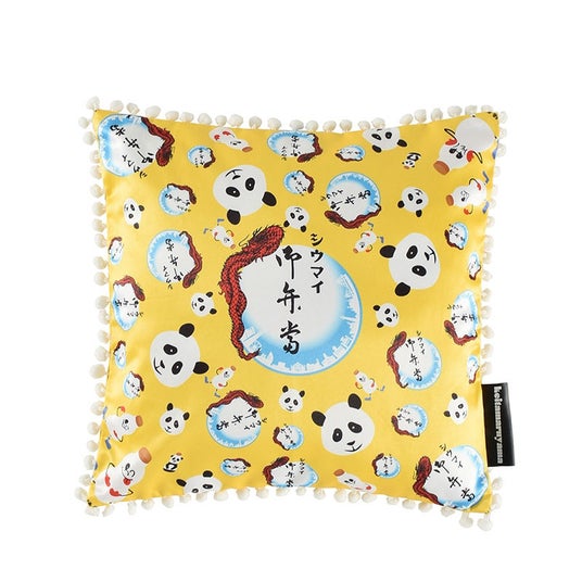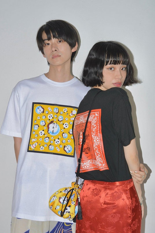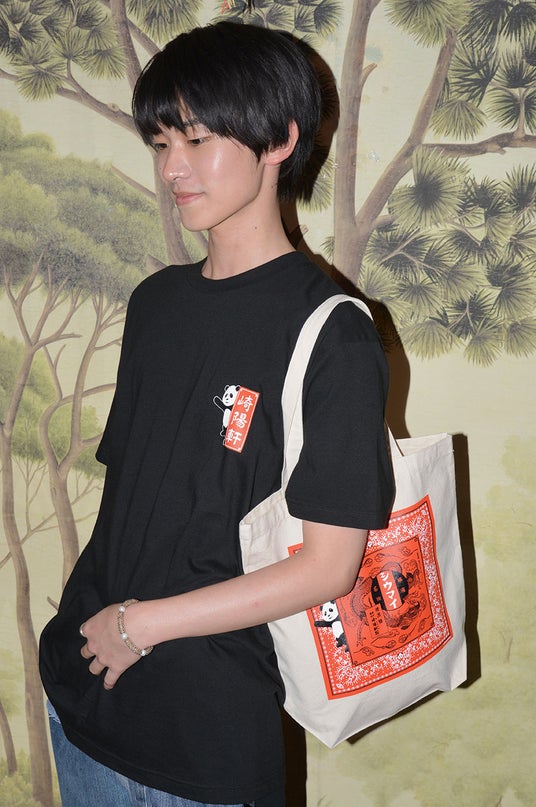 両者がコラボレーションするのは今回で2回目。“シウマイ弁当”の黄色のパッケージと、同じく崎陽軒を代表する“昔ながらのシウマイ”の赤いパッケージのデザインに、KEITA MARUYAMAの人気モチーフ“パンダ”を組み合わせ、巾着バッグ、クッション2型、トートバッグ2型、Tシャツ2型、バンダナ2型の合計9型のアイテムが完成。