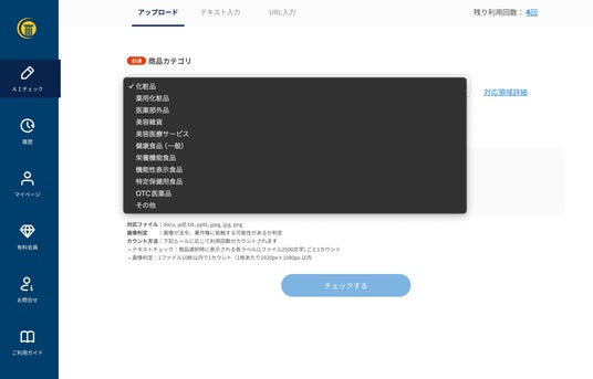 広告チェックAIは、新たに画像形式のjpeg、jpg、pngファイルに対応しました。これにより、より多様な広告素材を簡単にチェックできるようになり、ユーザーの利便性が格段に向上します。