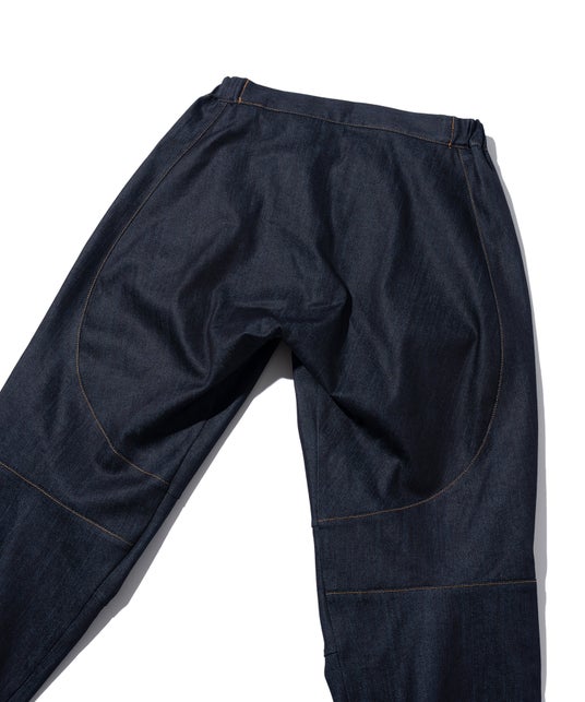 商品名:座っても立ってもかっこいい!車いすでも動きやすい魔法のデニムチェアーパンツ。サイドのファスナーで着替えがラクラク、ペットボトルから作られた地球にやさしい素材でできています(両開き4分)