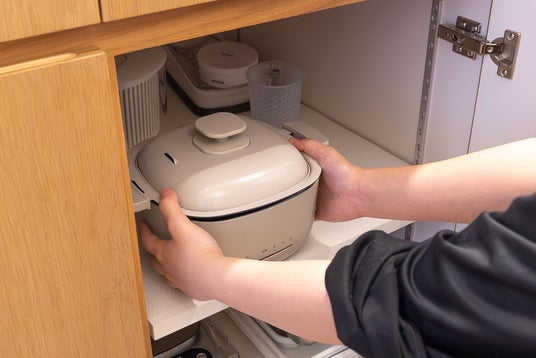 卓上に置いたままでも食器棚に入れても邪魔にならないコンパクト設計です。
