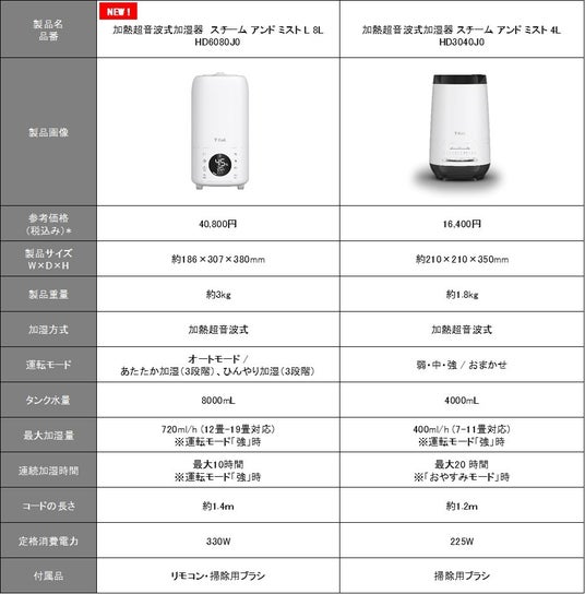 あったかスチーム&ミストで、360°スピード加湿!一日中ほったらかしで手間いらずの加熱超音波式加湿器ティファール「スチーム アンド ミストL 8L」発売