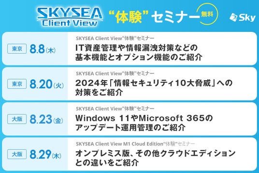 「SKYSEA Client View」 8月開催ハンズオンセミナー(東京・大阪)
