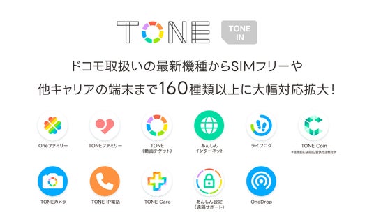 フリービット株式会社(本社:東京都渋谷区、代表取締役社長:石田 宏樹、以下「フリービット」)は、グループ会社である株式会社ドリーム・トレイン・インターネット(本社:東京都渋谷区、代表取締役社長:清水 高、以下「DTI」)が運営するトーンモバイルブランドにおいて、専用SIMを挿すと、トーンモバイルのコアサービスが利用可能になる「TONE IN」の対象機種が、ドコモ取扱いの最新機種に加え、auやSoftBankなどで取扱いの他キャリアの端末などへ、大幅に拡大することをお知らせいたします。また、既存のトーンモバイルオリジナル端末※からの“機種変更”をご検討のお客様には、スマホ購入を支援する「つながる端末保証 byトーンモバイル」オプションにご加入いただくと、最大6,320円分おトク※になるキャンペーンも実施いたします。
