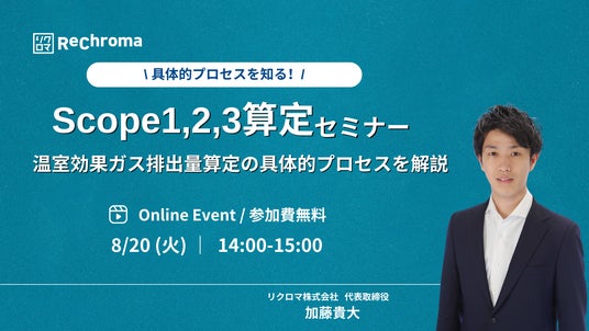リクロマ株式会社(本社:東京都渋谷区、代表取締役社長:加藤貴大)は、温室効果ガス排出量の算定方法をわかりやすく解説する「Scope(スコープ)1,2,3算定セミナー」を開催いたします。