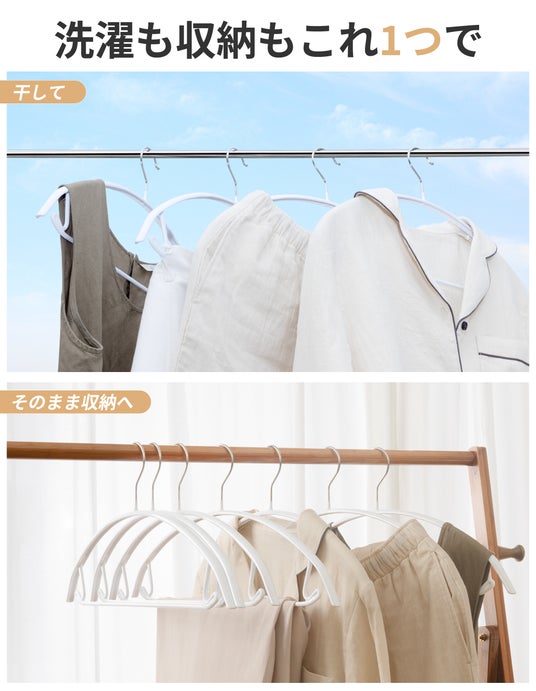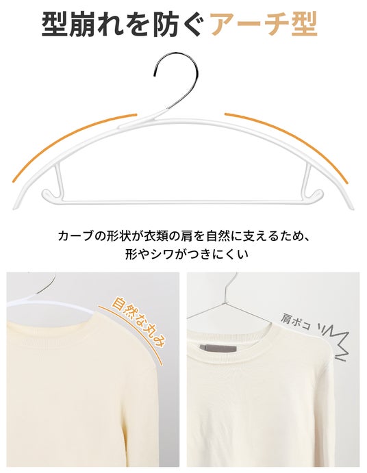 ハンガーの肩部分が丸みを帯びているため、衣類のかたくずれを防止。