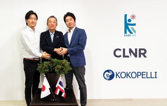 (左からコリニア株式会社 代表取締役CEO 小倉朗、KAIGO Life Co., Ltd. 最高経営責任者 チャヤポーン・ポーンプラパー、株式会社ココペリ 代表取締役CEO 近藤繁)