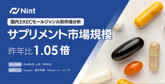 「データの価値、人の可能性が輝く世界」をビジョンに、国内大手ECモールの市場動向データ分析ツール「Nint ECommerce」(https://www.nint.jp/ec/)を提供する株式会社Nint(本社:東京都新宿区、代表取締役:吉野順子 以下、「Nint」)は、2024年4~6月におけるECモールサプリメント市場について調査いたしましたのでお知らせいたします。
