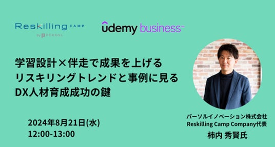 【2024年8月21日(水)12:00~13:00開催】リスキリング支援サービス『Reskilling Camp』、Udemy Businessと共催オンラインセミナーを開催