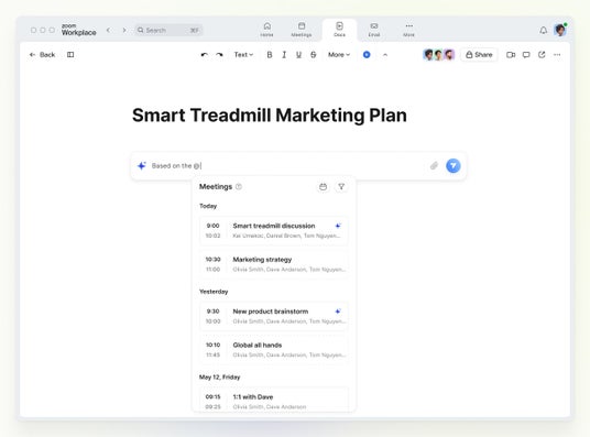 - 次世代の Zoom Docs で、Zoom Workplace 全体におけるコラボレーションを最適化。AI Companion によって Zoom Meetings のコンテンツを実用的なドキュメントに変換します。
