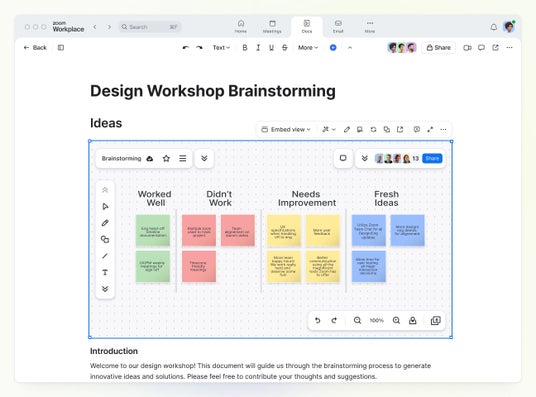 Zoom Meetings は Zoom Workplace の中核であり、Zoom Docs はその経験を基に、会議の前後および会議中のコラボレーションを強化することで、ユーザーの連携を強化し、より良い成果を達成できるようにします。