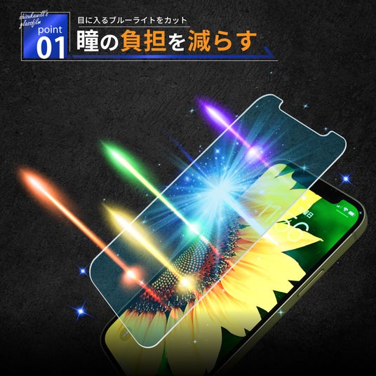 仕様:ブルーライトカット・硬度9H・指紋軽減・飛散防止・付着防止・防汚・耐傷性