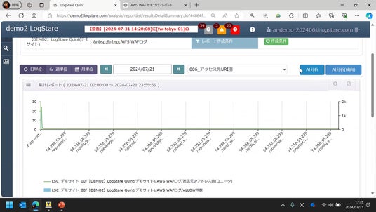 「LogStare」によるAWS WAFのログレポート(セミナー配信より抜粋)どこに異常があるのかベテランエンジニアでないと一見しただけでは分かりにくい