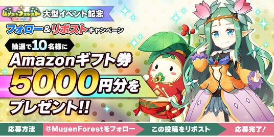 『ムゲン・フォレスト~妖精の牧場~』の大型イベントを記念して、Amazonギフト券5000円分が当たるキャンペーンを実施いたします。