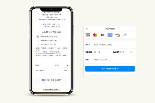 ブライダル業界に特化したサービスやソフトウェアを提供する株式会社TAIAN(本社:東京都新宿区、代表取締役:村田 磨理子)が開発する、Web招待状・席次表「Concept Marry(コンセプトマリー)」事前決済機能にてクレジットカード支払いが選択できるようになりました。ゲストによるご祝儀・会費の式前準備が不要になるのはもちろん、銀行口座振込の期限切れなどを気にすることなく、より手軽にご利用いただけます。