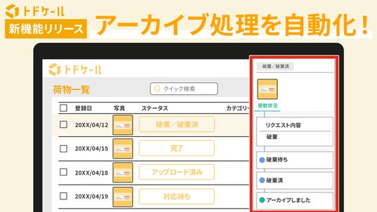 株式会社トドケール(本社:東京都千代田区、代表取締役:野島剛、以下トドケール)は、郵便物・配達物クラウド管理システム「トドケール」において、「自動アーカイブ機能」を新たにリリースしました。