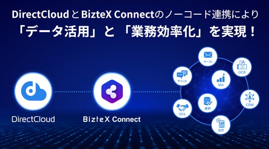 クラウドストレージで更なるドキュメント活用を推進する株式会社ダイレクトクラウド(本社:東京都港区、代表取締役:安 貞善、以下ダイレクトクラウド)は、BizteX株式会社(本社:東京都港区、代表取締役:嶋田 光敏、以下「BizteX社」)が提供する「BizteX Connect」とのノーコード連携を開始いたしました。