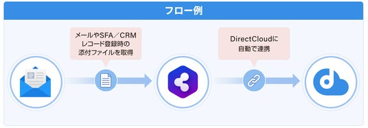 メールやSFA/CRMレコード登録時の添付ファイルを取得し、DirectCloudに自動で連携します。