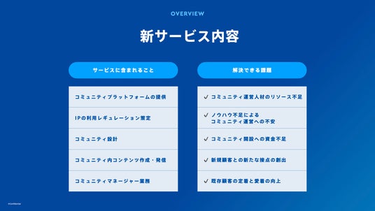 新サービスは、クリエイターやブランド・企業の担当者さまからIPやコンテンツ・素材の提供をいただくだけでオシロ専任の担当者がクリエイターやブランド・企業の世界観を表現するコミュニティ設計から立ち上げ、運営までを担うワンストップサービスです。従来の「OSIRO」のサービスであるコミュニティ設計、システム提供、オープン後のサポートにとどまらず、包括的な支援によりクリエイターやブランド、企業の豊かなコミュニティをオシロが運営いたします。
