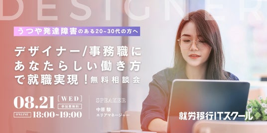【2024年8月21日(水)18:00~19:00開催】障害の壁を越え、IT業界への就職と定着を支援する就労移行ITスクール、デザイナー・事務職志望者向けのウェビナー&個別相談会を開催!