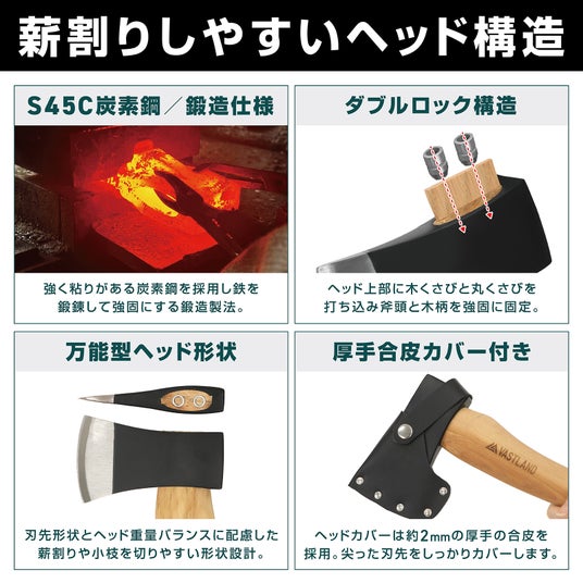 厚手合皮カバー付きの"鋭角研磨仕上げ"薪割り手斧