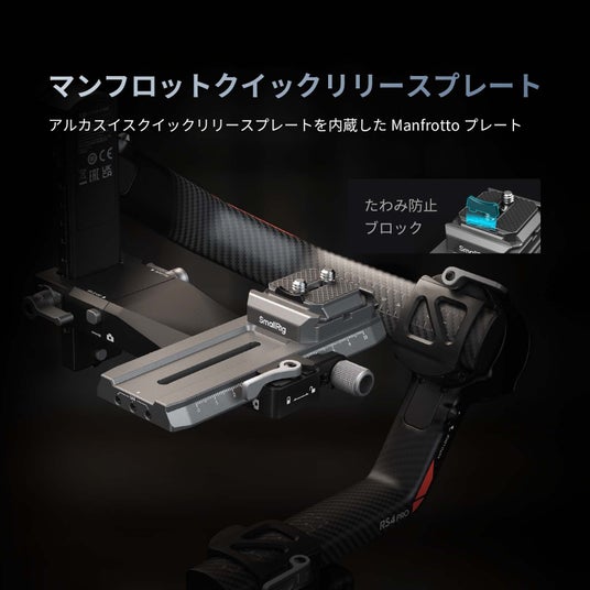 Manfrottoクイックリリースプレート(製品ID:4638)は、DJI RS 2 / RSC 2 / RS3 / RS 3 Pro / RS 4 / RS 4 Pro専用のプレートです。工具不要で素早くロックできるクイックリリース構造を採用しており、アルカスイス規格対応のクイックリリースプレートが付属しています。これにより、三脚やスタビライザーなどの機材の切り替えがスムーズに行え、撮影作業を効率的に進めることができます。