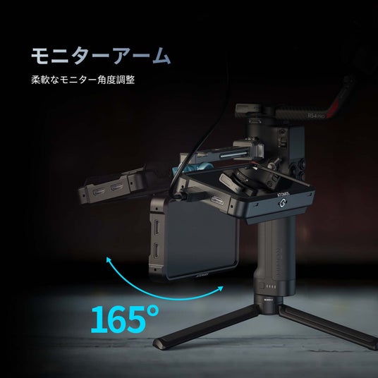 HawkLockモニターアーム(製品ID:4637)は、DJI RS 2 / RSC 2 / RS3 / RS 3 Pro / RS 3 mini / RS 4 / RS 4 Proスタビライザーと互換性があります。最新のHawkLockクイックリリース設計により、モニターアームの効率的な取り付けと分解が可能です。また、スタビライザー本体のNATOレールに傷がつかないよう、同梱のクイックリリースNATOレールを使ってネジで固定し、そのNATOレールを介してモニターアームをスタビライザーに取り付けます。最大165度まで傾斜角度を調整できます。