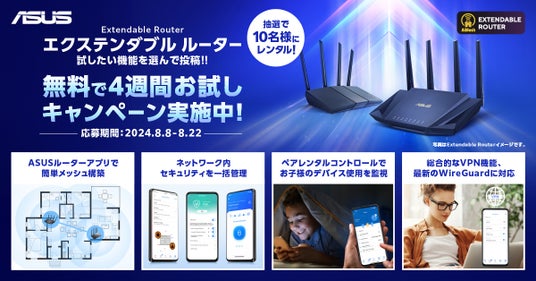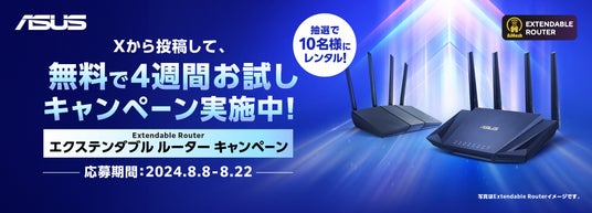 ASUS JAPAN株式会社は、Extendable Router (エクステンダブル ルーター)の無料貸出しキャンペーンをX(旧Twitter)にて開催することを発表しました。