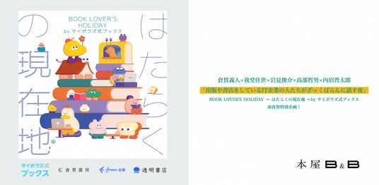 BOOK LOVER'S HOLIDAY ~ はたらくの現在地 ~ by サイボウズ式ブックスの前夜祭特別企画として、本イベントが開催されます。このイベントでは、効率を重視し、出版や紙の本とは対局の価値観で活動しているように見えるIT企業が、なぜ出版や書店を始め、そして続けているのかについて、各社の代表者が語り合います。