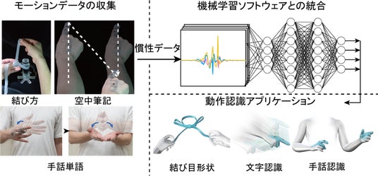(図3)ストレッチャブルハイブリッドデバイスを用いた動作認識システムの概要