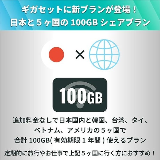 このプランは、日本国内および指定された海外の国々で合計100GBのデータ通信を利用できる新しいサービスです。